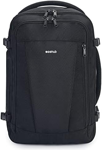 【ORGANISED】: ECOHUB rucksack have tons of external pockets can hold ipad and notebooks, pens, passports. The key chain can secure and locate your keys stress-free. A top pocket is designed with tickets and sunglasses in mind. It is convenient for anyone who wants to travel to get on the plane quickly. The hidden back pocket can hold valuable items such as phone, wallet and so on. Quick access zipper pocket on front panel for toiletry bag security check.