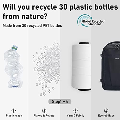【RECYCLED PET HIGH QUALITY FABRIC】: ECOHUB carry on luggage is 100% because it is made from 30 PLASTIC PET bottles! Recycled fabric is water-resistant and lightweight and certified by GRS. Also built with Heavy Duty SBS brand zippers, reinforced ripstop stitching. ECOHUB travel bag s the top quality.