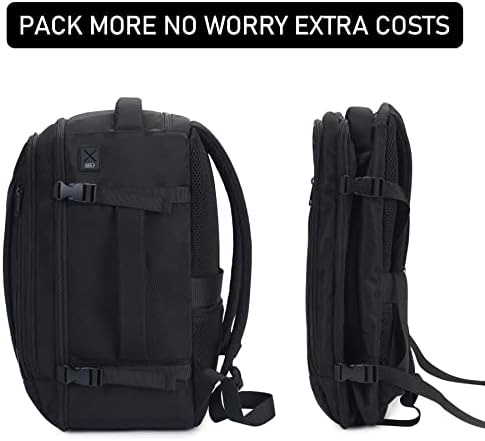 【SPACIOUS AND EASY TO USE】: The spacious main compartment can be opened like a suitcase, with two thoughtfully-designed pockets that keep all your essentials organized and elastic straps are perfect for bulky items like shoes and clothes. Side compression straps adjust the backpack space so you can pack more. The side handle allows us to easily carry it as a holdall. Sliping the luggage strap over the handle of your suitcase for easy travel. The shoulder straps are thick and lined with padding.